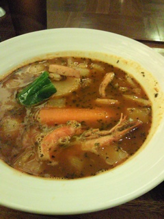 やっぱりチキンが基本です。 オクラをトッピングしてみました。 ※状況※ 観劇前に。 ※お店情報※ カレー食堂 心 下北沢店 東京都世田谷区北沢2-34-8 TEL 03-5452-3561 2012.05.08再訪 シーフードのスープカレーも美味しいです。 2016.04.16再訪 今回もまた観劇とセットです。 下北沢=観劇=カレーな感じ。 |