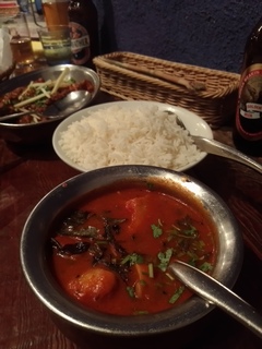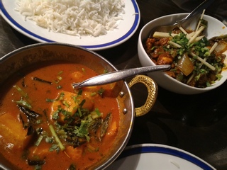 カレーランチ。 バナナの葉がお皿代わり。 細ながーーいバスマティライス。 カイバルは姉妹店。 ※状況※ わ、隣卓の人、手で食べてる! ※お店情報※ Dhaba India(ダバ・インディア) 東京都中央区八重洲2-7-9相模ビル1F TEL 03-3272-7160 (2011.07.14再訪) 前回ランチで食べた海老があまりにも美味しかったので。 海老だけのをひと皿作って下さい。 タンドリーチキンも。 (2013.06.10再訪) 今日はチキンマサラを。 (2014.12.25再訪) クリスマスなのでカレーを。 白身魚とタマリンドのカレー。酸味がきいていて美味しいです。 インドのビールも。 (2016.3.23再訪) またも白身魚&タマリンドで。 酸味のカレーが好きなのです。 |