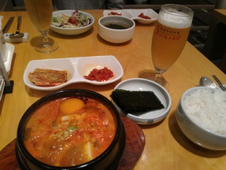 純豆腐ランチにビール小グラス。