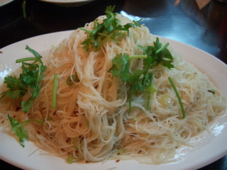 台湾の素麺があっさり炒めてあるだけ。香草がいい感じ~。