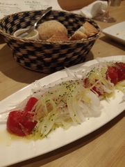 トマトと新タマネギ、オリーブオイルに塩。