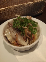 キノコのマリネをつまみながら、今宵はワイン。