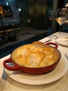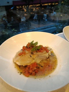タラバ蟹とオマール海老のパートフィロ包みでございます。